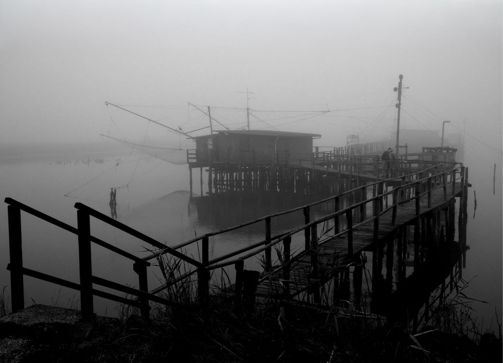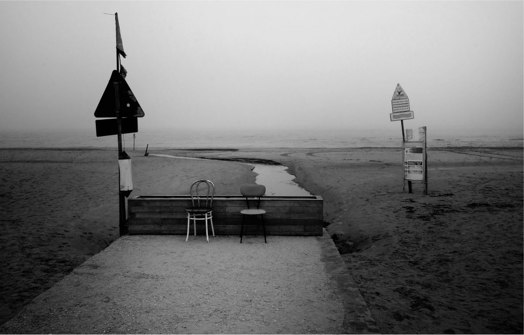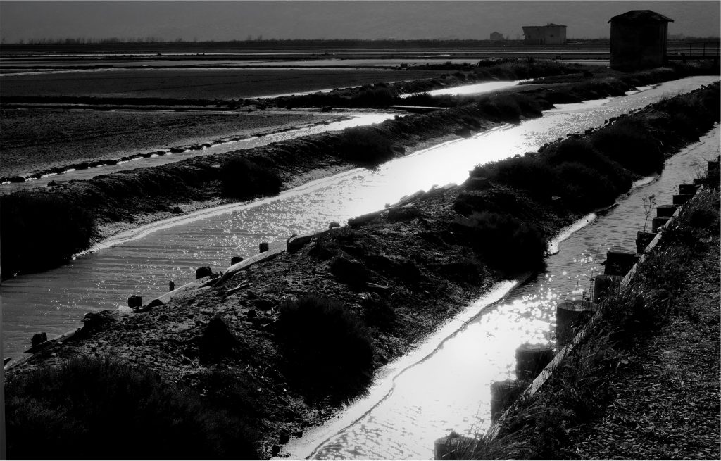 La mostra presenta una serie di fotografie in bianco e nero realizzate tra il 2020 e oggi, frutto di un’indagine visiva che attraversa territori diversi ma accomunati dalla presenza dell’acqua come elemento fondante. Le immagini sono state scattate in località quali il Tirolo, le coste nord-adriatiche, le Valli di Comacchio e la Riviera romagnola, luoghi in cui il confine tra terra e mare è instabile e continuamente ridefinito.