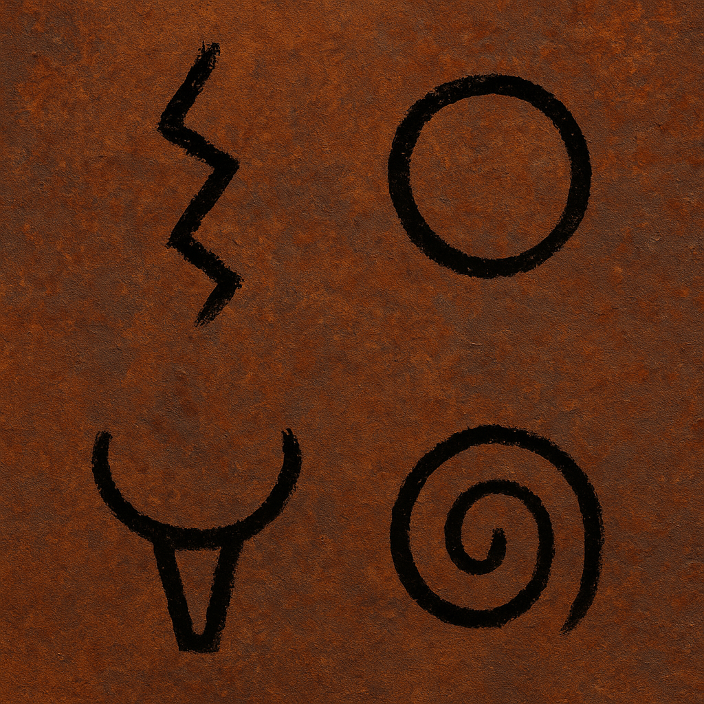 In Sardegna il ferro, introdotto in epoca nuragica avanzata, rappresentò un passaggio epocale: nuove tecniche, nuovi scambi, nuove forme di contatto con l’altro. In mostra, questo elemento primario ritorna come segno archetipico, insieme a incisioni, protomi taurine, simboli arcaici e grafici che richiamano una scrittura antica, non verbale, precedente al linguaggio.