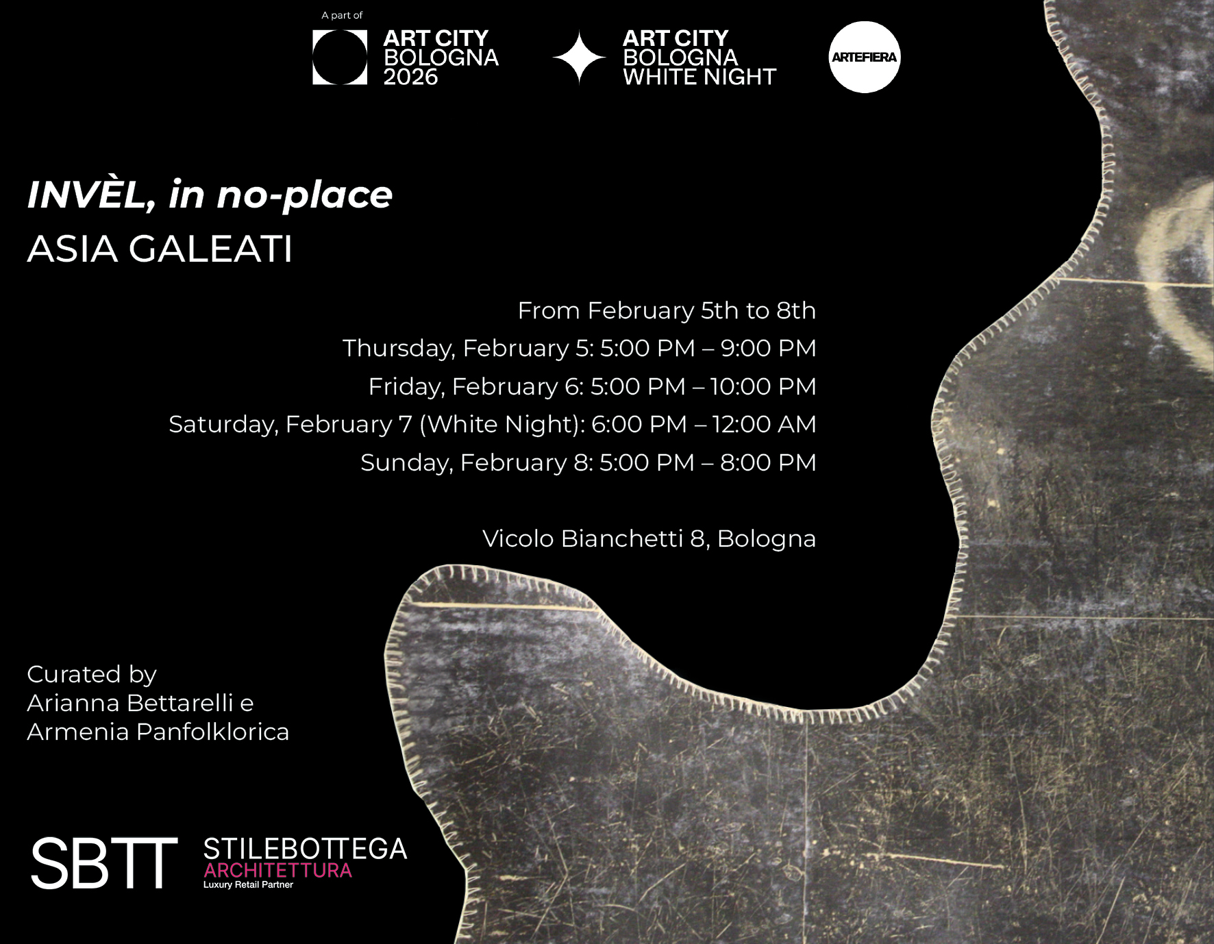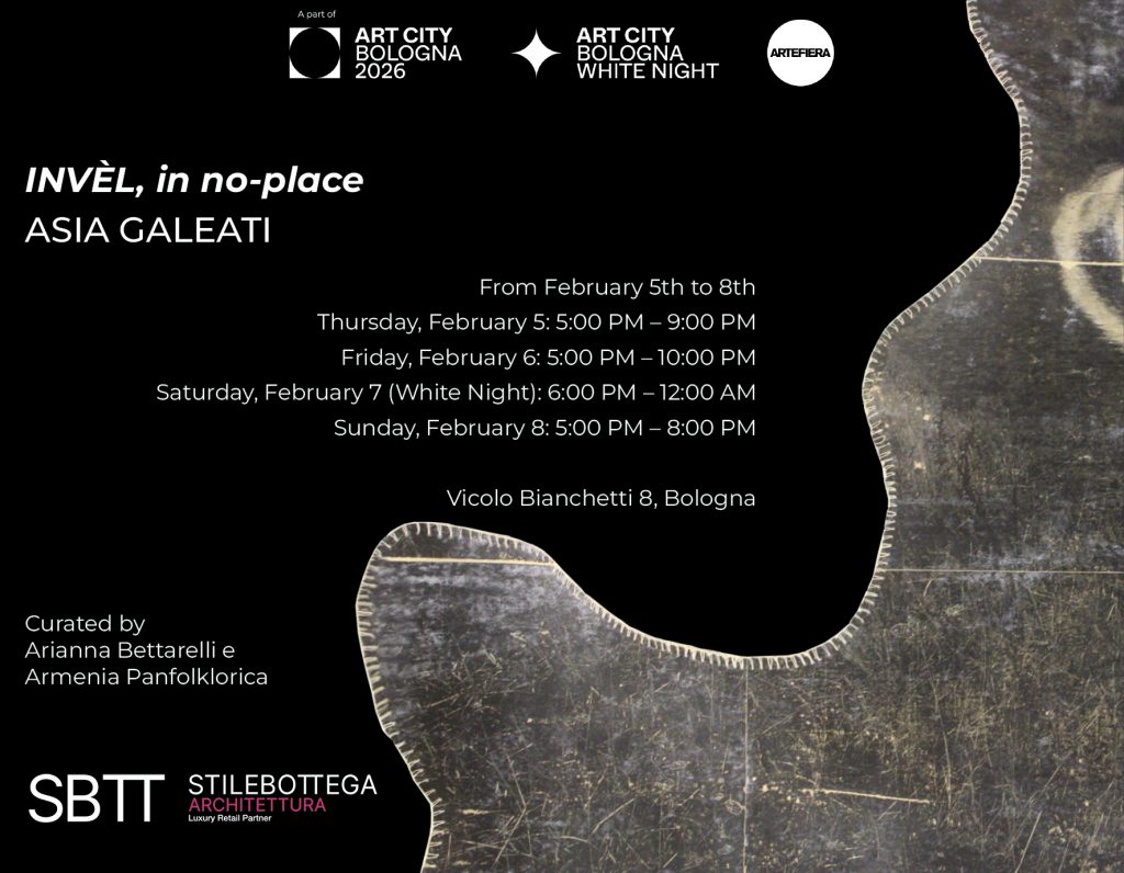 In occasione di Art City “Invèl, in nessun luogo di Asia Galeati”. Occupando la grande sala in stile neo eclettico di SBTT, la mostra indagherà le potenzialità dell’eredità della memoria in uno “spazio dell’altrove” dove ricordo e immaginazione si uniranno in una nuova estetica e identità, e in cui la collettività potrà riconoscersi.