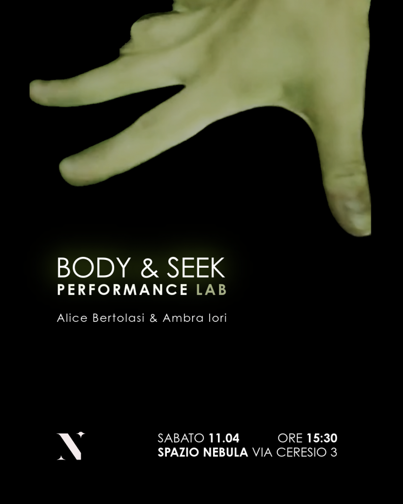 Body & Seek Performance Lab si configura come progetto di ricerca partecipativa ospitato da Spazio Nebula a Milano. Indaga le relazioni tra corpo, presenza, tecnologia e ascolto. L’iniziativa si inserisce in un percorso artistico che intreccia pratica, propriocezione e dimensione relazionale, rendendo lo spazio della performance un ambiente di attivazione sensibile e collettiva. Progettato come un laboratorio aperto, Body & Seek invita il pubblico a partecipare attivamente all’esperienza. I partecipanti devono portare con sé un dispositivo elettronico e lasciarsi coinvolgere da un flusso di suoni, notifiche e segnali digitali. In questa performance, il corpo si muove tra controllo e abbandono, risposta e immersione, creando una dinamica condivisa. In questo modo, il confine tra spettatore e partecipante diventa meno definito. Attraverso una struttura immersiva e relazionale, la performance mette in discussione le modalità moderne di percezione e connessione. Apre uno spazio di riflessione su come viviamo i nostri corpi e sensi nell’ecosistema digitale. Grazie alla documentazione che verrà raccolta durante l’esperienza collettiva di Body & Seek, proseguirà la ricerca sotto forma di residenza artistica nel mese di maggio presso Spazio Nebula, seguita da un open studio conclusivo.