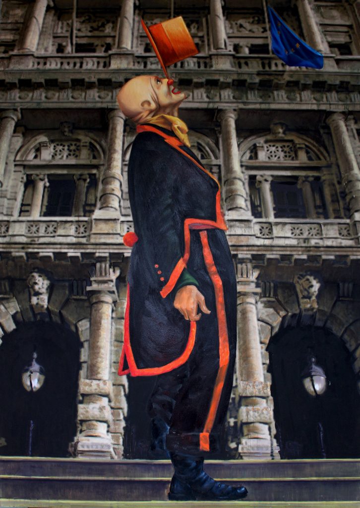 L'esposizione trasforma le prestigiose sale del Castello in un palcoscenico metafisico dove personaggi circensi e maschere della tradizione occupano simbolicamente i luoghi del potere. Ispirandosi alla "società dello spettacolo" di Guy Debord, l'opera di Lombardo indaga con ironia e cruda poesia la condizione umana contemporanea, invitando lo spettatore a riscoprire l’autenticità del vivere oltre la finzione quotidiana.