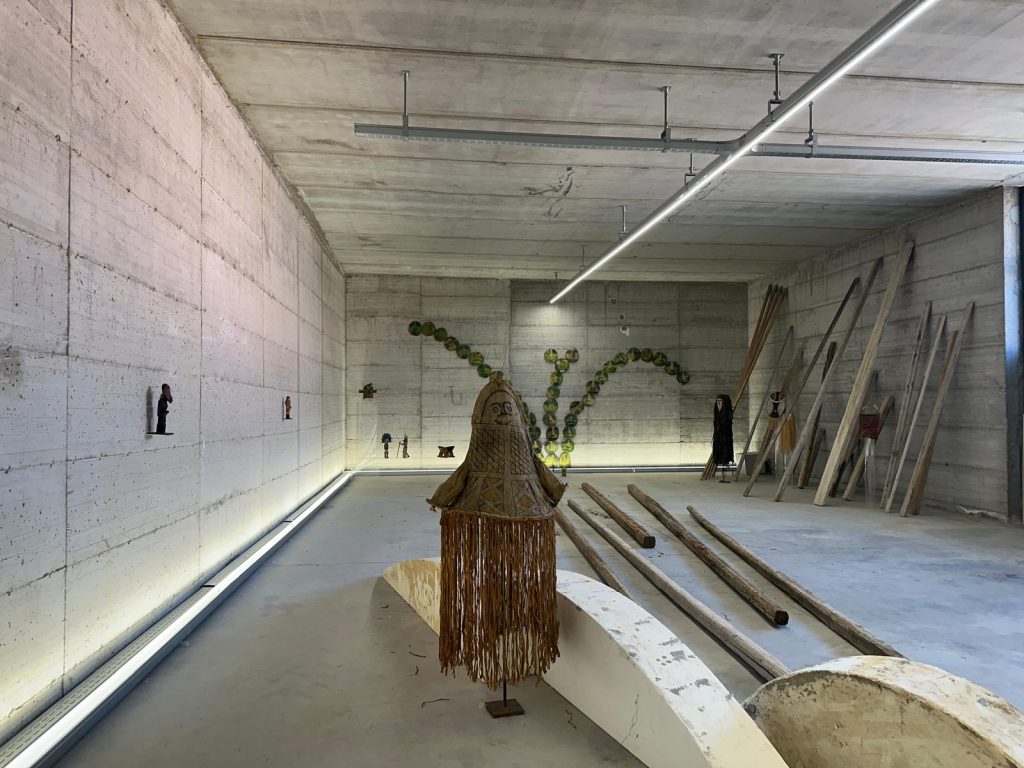 Le opere tradizionali provenienti da Oceania e Amazzonia dialogano con il nostro tempo e con il nostro mondo attraverso le sedie scultoree di Mario Botta (Quinta, 1985, Alias) e l’installazione di Matia Chincarini Oponopon. L’artista ha pensato questa opera ispirandosi sia ai Surrealisti sia ad una antica pratica di guarigione e riconciliazione hawaiana chiamata Ho’oponopono, che si traduce come “mettere le cose al posto giusto”.