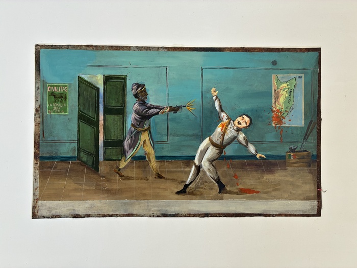 Il progetto espositivo fortemente legato all’attuale contesto geopolitico, in particolare alla tragedia del popolo palestinese. La mostra raccoglie lavori di pittura, scultura e video, dando forma a una narrazione alternativa fatta di memoria collettiva, lotta e resistenza. "Miracolo" si sviluppa a partire da una riflessione sull’iconografia votiva e sul significato degli ex voto, oggetti devozionali che Ortiz reinterpreta alla luce dei conflitti storici e contemporanei che attraversano il Mediterraneo.