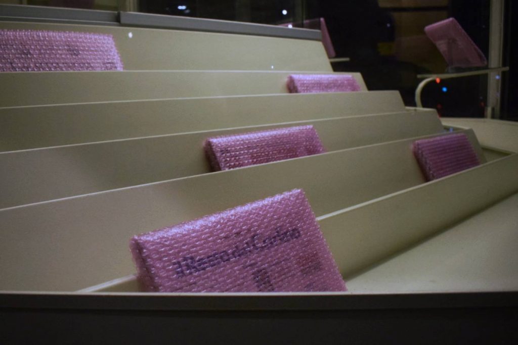 Formatosi in antropologia culturale, Scapinelli concentra la propria ricerca sui processi di mediazione e sulle dinamiche simboliche che condizionano la percezione collettiva. Con Deconstructio et decodificatio, l’artista mette in atto un gesto tanto semplice quanto rivelatore: prelevare quotidiani, manipolarli, ricoprirli con pluriball antistatico rosa e disporli in vetrina come oggetti di design o accessori di moda.