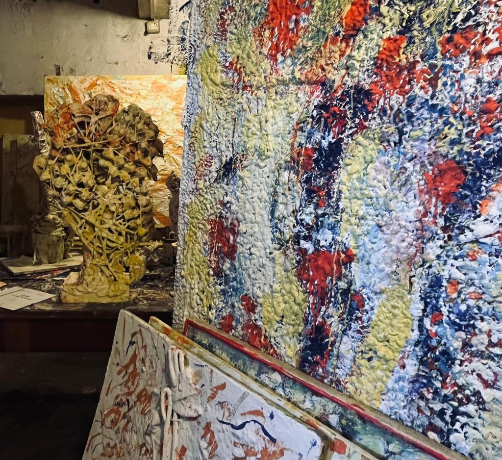 Un incontro tra generazioni e linguaggi: Eughen e A-Wibaa dialogano attraverso la materia e la visione, intrecciando silenzio e riflesso in un percorso che unisce memoria e contemporaneità.