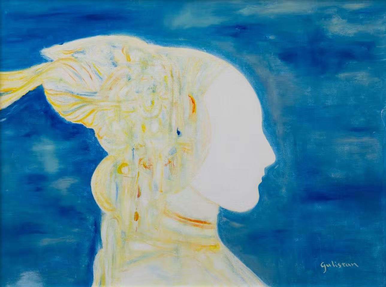 Una selezione di 45 opere delinea l’universo visivo dell’artista, denso e stratificato, in cui pensieri, ricordi, sogni e simboli si intrecciano dando forma a un racconto intimo, ma capace di risuonare in chiave universale. Il percorso espositivo invita il visitatore a immergersi in una dimensione sospesa tra memoria e immaginazione, attraversando uno spazio in cui motivi interiori e riferimenti culturali si fondono in un dialogo continuo. Alcune opere, soprattutto se osservate in rapida sequenza, suggeriscono una rievocazione dell’arte europea pur filtrata dallo sguardo cinese e dalla tecnica della pittura su carta. La pittura di Gulistan si distingue, infatti, per la capacità di mettere in relazione tradizioni differenti: da un lato la cultura visiva cinese, con la sua attenzione al segno, al vuoto e alla dimensione spirituale; dall’altro suggestioni provenienti dalla storia dell’arte europea. Ne nasce un linguaggio originale nel quale due mondi dialogano idealmente, visivamente e spiritualmente; le linee calligrafiche orientali si confrontano con la struttura della modernità europea, integrando componenti simbolici orientali ad altri tipicamente occidentali. Questa convergenza consente a Gulistan di essere un ponte tra Est e Ovest.