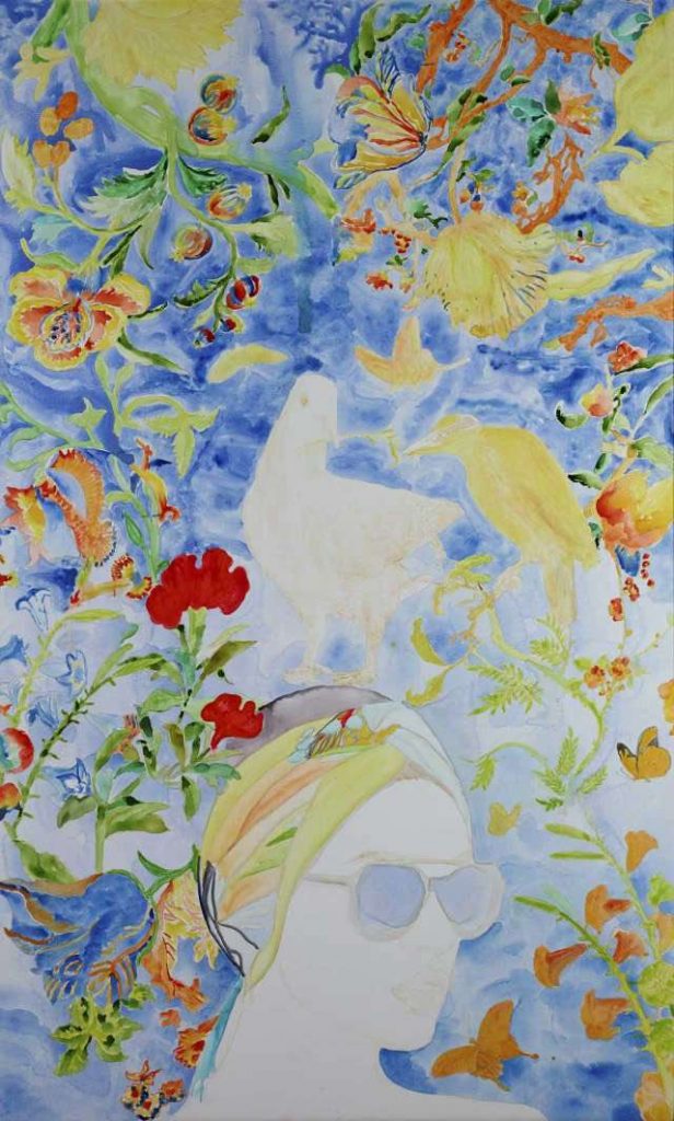 Elemento centrale nella poetica di Gulistan è il tema del Giardino, inteso non solo come spazio fisico, ma anche come spazio simbolico e interiore. Nella tradizione orientale il giardino rappresenta un microcosmo in equilibrio, un luogo di contemplazione e armonia con la Natura, un invito ad essere costantemente in sintonia con essa, con la sabbia, l’acqua, i sassi e la vegetazione. Nelle opere esposte il giardino è metafora della memoria e del tempo, uno spazio in cui passato e presente coesistono e si rigenerano continuamente. Il Giardino diventa anche il teatro in cui assumono consistenza le figure che emergono e, al contempo, si sottraggono allo sguardo, presenze in bilico tra apparizione e cancellazione, “non finite”. Anche i titoli dei quadri esposti ci guidano nel mondo interiore dell’artista e ne evocano la personale simbologia: “Meditazione”, “Siamo foglie dello stesso albero”, “Le note della terra”, “Omaggio ai classici”, “Una leggenda sul tempo”, “Giardino del Tempo”, “Memoria del ritratto”, “Roaming in Europe”, evocano immagini nelle quali la figura è sostanzialmente protagonista, pur apparendo in modalità cangianti da un'opera all'altra.