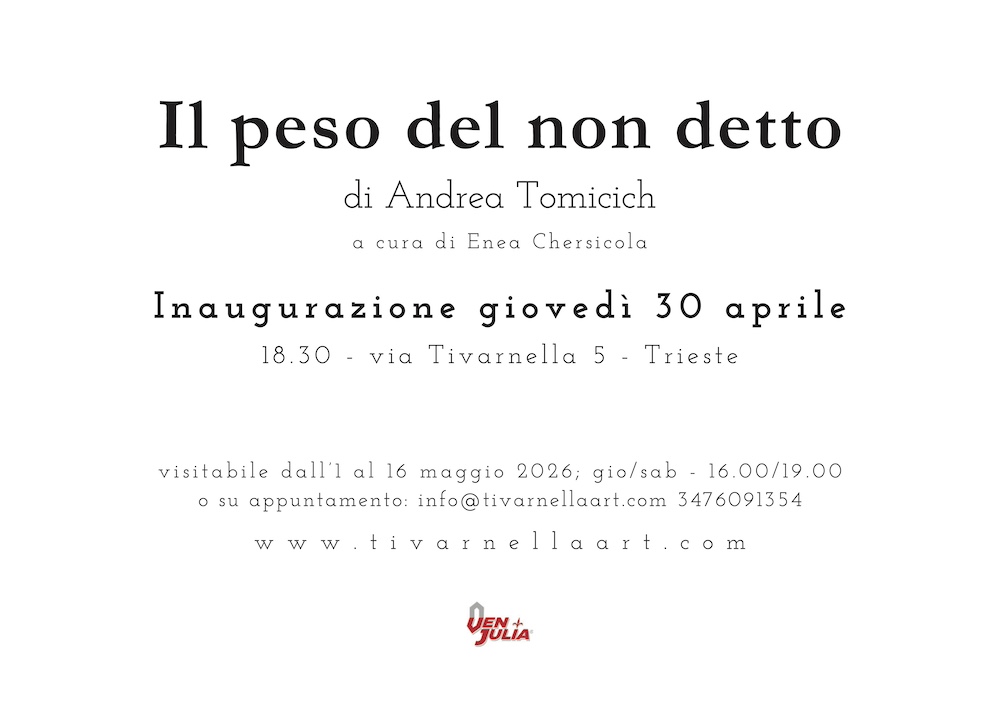 Tivarnella Art Consulting presenta a Trieste Il peso del non detto, mostra personale di Andrea Tomicich, a cura di Enea Chersicola. Il progetto si configura come un’indagine visiva sul silenzio e sulle sue implicazioni emotive, esplorando ciò che rimane sospeso tra esperienza e memoria: parole non pronunciate, gesti mancati, relazioni interrotte.