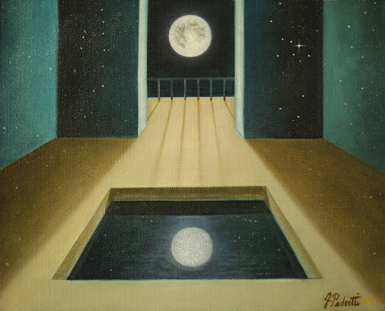 Pedretti, nato a Cape Town e attivo a Roma dagli anni ’80, ha affiancato al lavoro di pittore un’intensa attività di restauratore. La sua arte fonde rigore tecnico e introspezione, tradizione e contemporaneità, realizzando opere che ricordano l’equilibrio metafisico di De Chirico ma con una sensibilità più pacificata e meditativa.