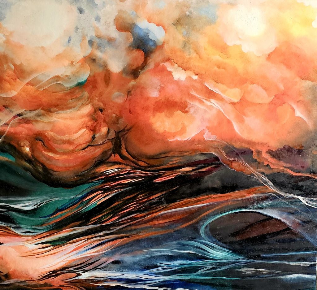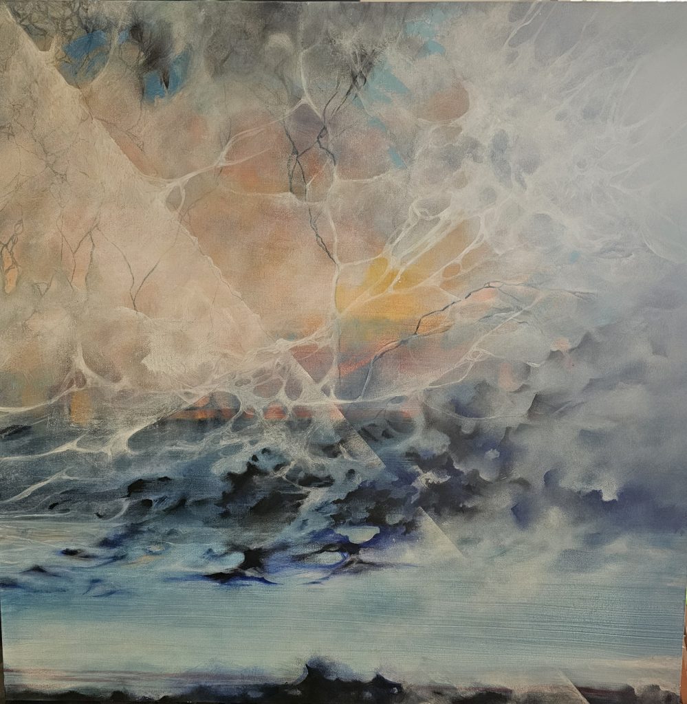 L’esposizione, il cui titolo rimanda all’antico nome del Feng Shui - l’arte nobile del Vento e dell’Acqua - si configura come una ricerca costante di equilibrio e un dialogo silenzioso tra l’artista e l’universo. Ispirata dal Feng Shui, disciplina approfondita nel corso degli anni, in quanto collegata alla parte energetica dell’architettura e, per estensione, al rapporto tra l’essere umano e lo spazio circostante, l’artista spiega che i suoi lavori sono la storia dei suoi giorni, una “deperibile traccia esistenziale” che si addentra negli spazi e nella percezione dell’energia. Come ben evidenzia Francesca Alfano Miglietti (FAM) nella sua nota introduttiva al catalogo della mostra (con testi in italiano e in inglese), il concetto di sublime è un’idea centrale che permea l’immaginario di Silvana Bonaccorso. Non si tratta di una quiete immutabile, ma di un’immagine scossa da un’infinita energia che la trasforma incessantemente. Questo richiamo al sublime moderno lega il cielo, il mare, l’atmosfera e l’interiorità, mettendo in relazione la natura - così come l’inconscio - con la dinamica, non statica, della natura umana.