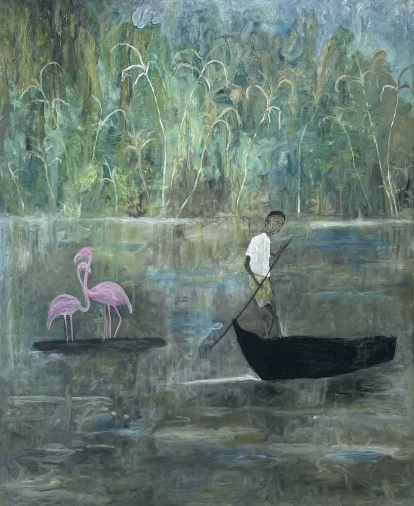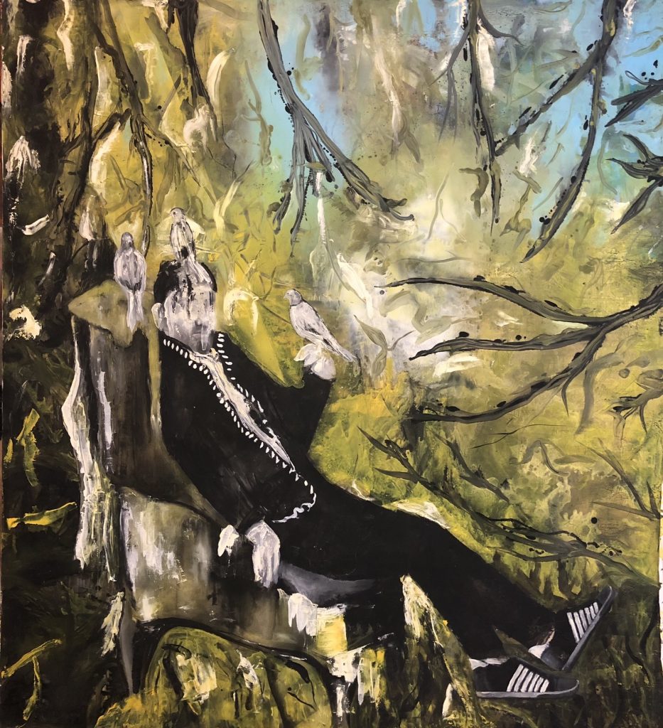Seduto su una poltrona consumata dal tempo, immerso nella natura e accompagnato dal volo leggero delle colombe. Fiol si racconta anche attraverso i suoi autoritratti. Artista cubano nei suoi lavori convivono foreste rigogliose, personaggi intensi e forti contrasti cromatici, dipinti con un segno libero e naturale.