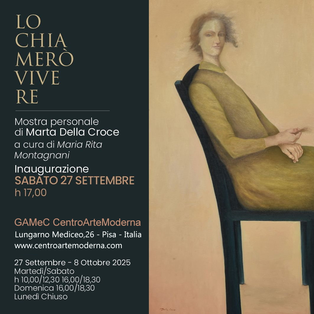 Il GAMeC CentroArteModerna di Pisa è lieto di annunciare il gradito ritorno di Marta Della Croce, artista pisana di rara intensità espressiva, che dopo anni di silenzio creativo torna a esporre nella sua città natale con una mostra personale dal titolo evocativo: "Lo chiamerò vivere".