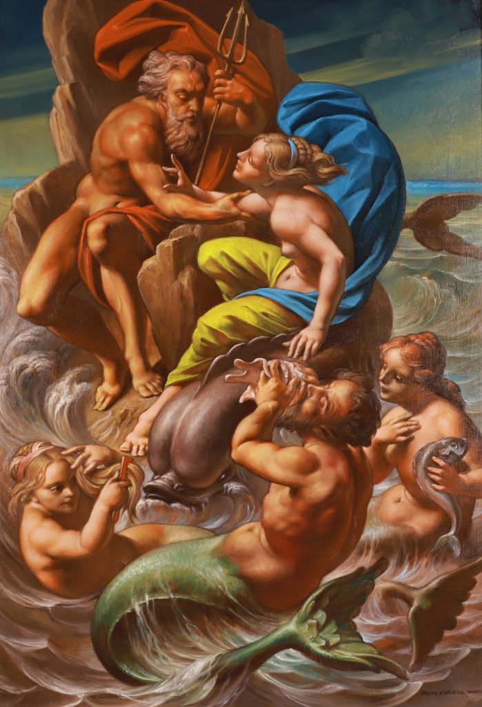 Il titolo scelto, “Mondi Salvi”, introduce la nuova formula che mette in relazione due artisti di generazioni e linguaggi diversi: Bruno d’Arcevia, maestro del neo-manierismo, e Giorgio Tentolini, esponente del contemporaneo che lavora sulla sovrapposizione di strati di rete metallica per dare forma a figure sospese tra realtà e illusione. A curare la mostra è Andrea Baffoni, con la collaborazione della Galleria Russo di Roma. Il tema centrale, il mito di Pigmalione, diventa simbolo del rapporto tra arte, materia e creazione, sottolineato dal sottotitolo “La maniera del mito”.