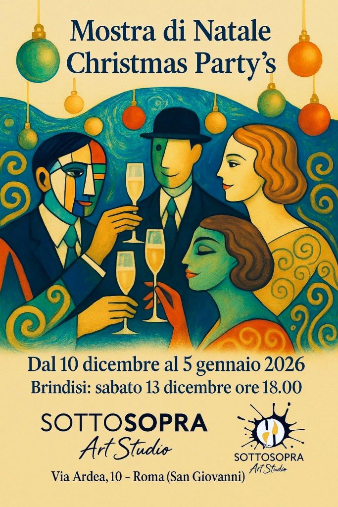 “Christmas Party’s” trasforma la galleria in una piccola festa dell’arte: tele come costellazioni, sculture-isole e figure poetiche creano un viaggio corale tra luci, emozioni e visioni. Un racconto condiviso che accende il Natale di bellezza.