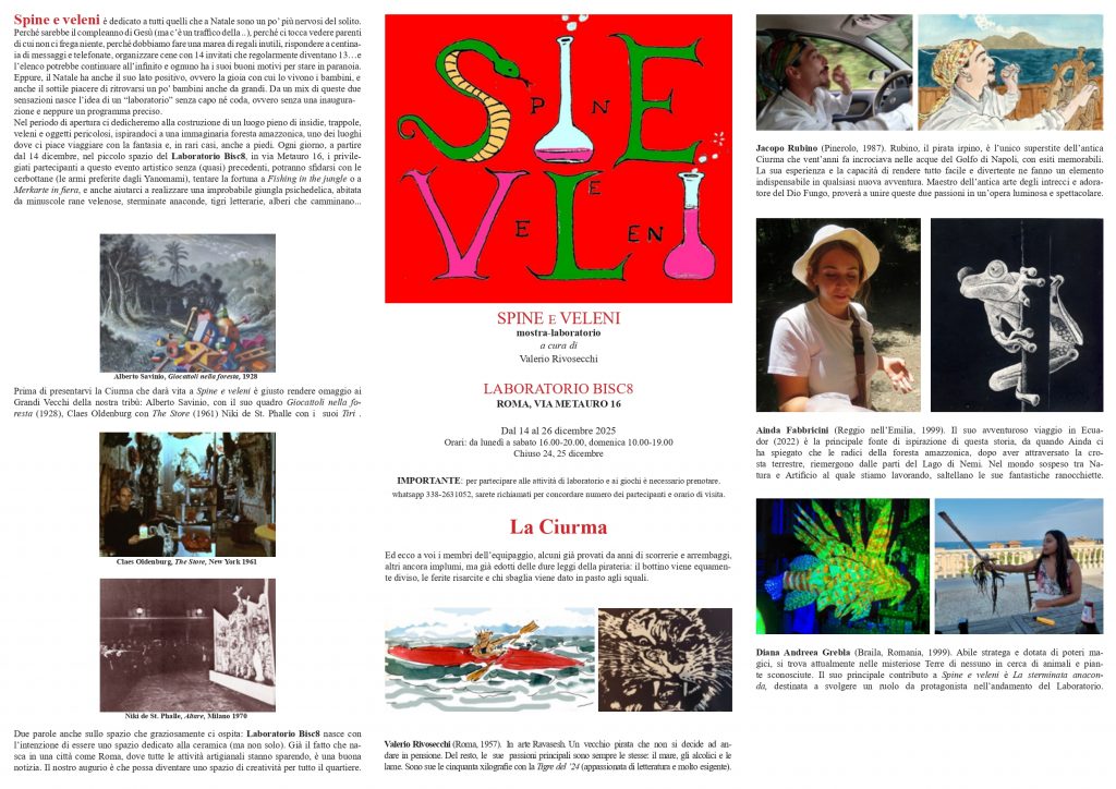 A due passi dal magico quartiere Coppedè apre il Laboratorio Bisc8, nuovo spazio dedicato alla creatività e alla ceramica. Qui prende vita la sua prima proposta Spine e Veleni, mostra-laboratorio curata da Valerio Rivosecchi, che reinterpreta il periodo natalizio in modo ironico e sensoriale. Il titolo richiama il contrasto tra lo stress delle feste e la meraviglia infantile del Natale. Da questa tensione nasce un ambiente artistico immaginato come una foresta amazzonica fantastica e psichedelica, ricca di trappole, oggetti insidiosi e suggestioni avventurose.