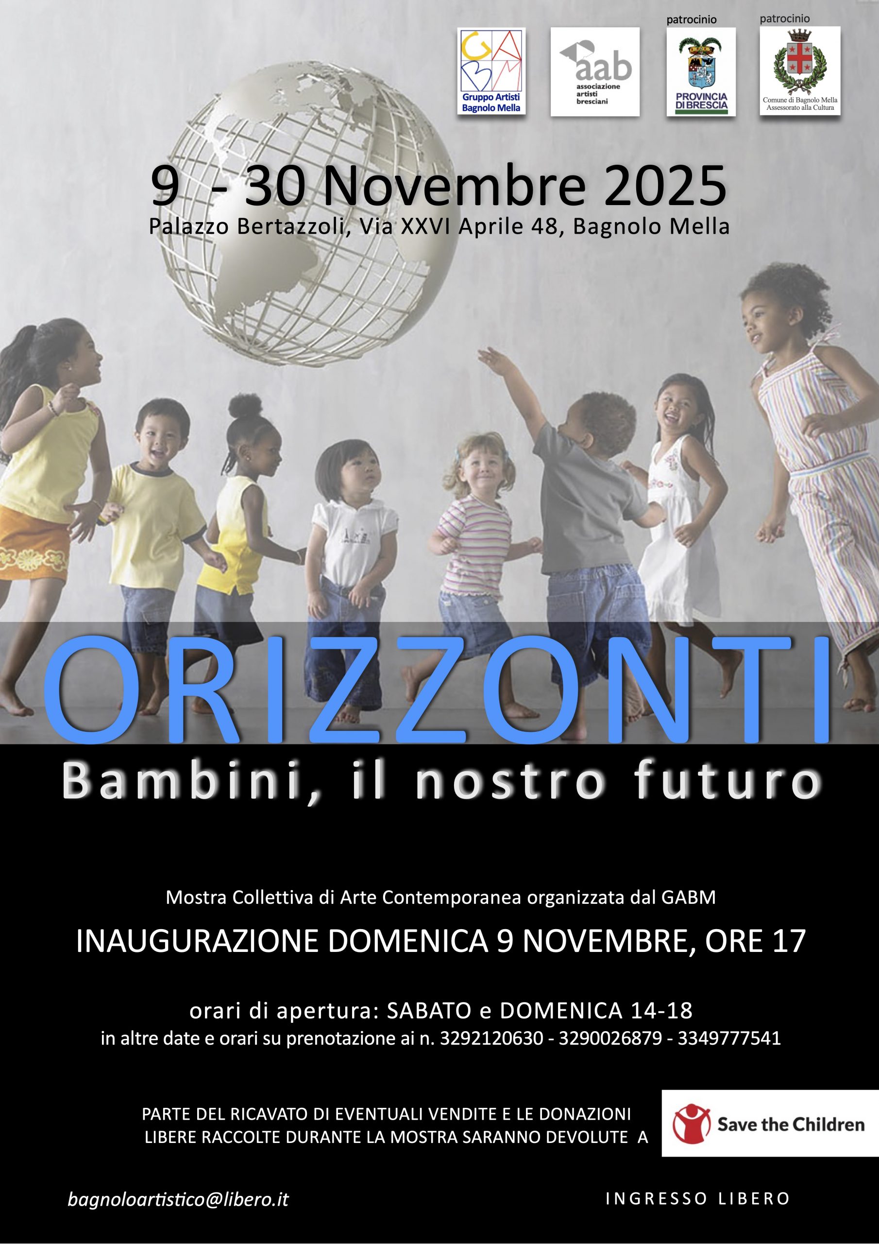Mostra di Arte Contemporanea che affronta il tema del disagio dei bambini di tutti il mondo sottoposti ai più cruenti disagi ( guerre, carestie, maltrattamenti....), che gli negano il futuro. Gli artisti, fin qualità di "attivisti" sociali sono chiamati a sensibilizzare le coscienze, le loro opere sono il valore determinante per un'arte sociale.