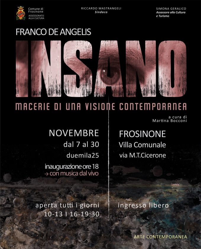 INSANO macerie di una visione contemporanea Presso la villa Comunale di Frosinone ci sarà l'apertura della mostra di pittura “INSANO,…