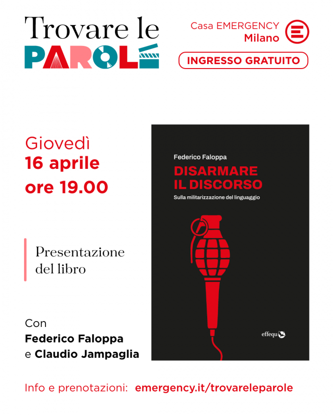 GIOVEDÌ 16 APRILE A CASA EMERGENCY PRESENTAZIONE DEL LIBRO “DISARMARE IL DISCORSO. SULLA MILITARIZZAZIONE DEL LINGUAGGIO” DI FEDERICO FALOPPA IN…