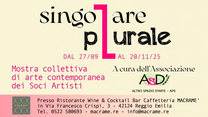 Presso il locale “Macramè”, inaugura “Singolare plurale”, la mostra collettiva che riunisce i soci artisti per l’anno 2025 dell’associazione Altro…