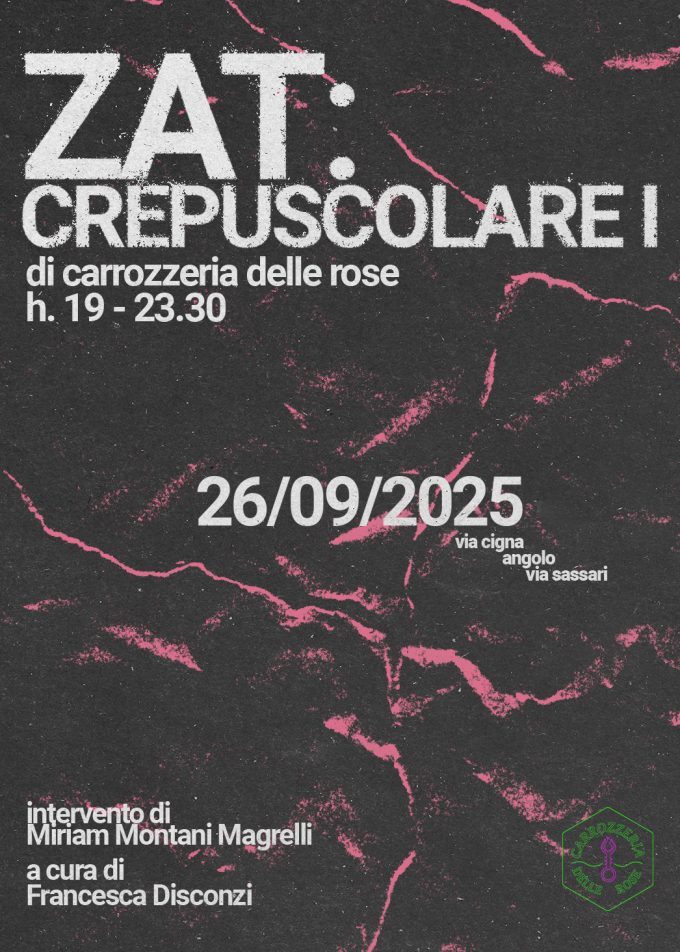 ZatCrepuscolare TORINO, 26 SETTEMBRE 2025 Carrozzeria delle Rose, intervento artistico di Miriam Montani Magrelli a cura di Francesca Disconzi INAUGURAZIONE…