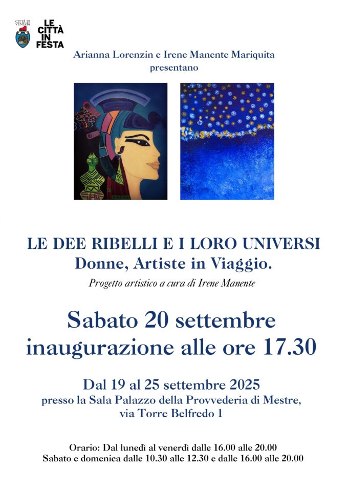 Mostra d'arte contemporanea bipersonale delle pittrici veneziane Irene Manente e Arianna Lorenzin. L’esposizione presenta le opere delle due artiste: due…