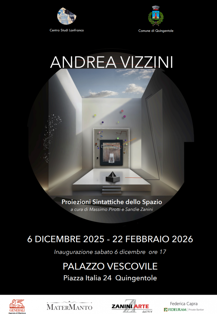 Apre questo sabato, all’ex Palazzo Vescovile di Quingentole (MN), “Proiezioni Sintattiche dello Spazio”, la nuova mostra istituzionale dell’artista Andrea Vizzini, con la quale chiuderemo in bellezza questo 2025.