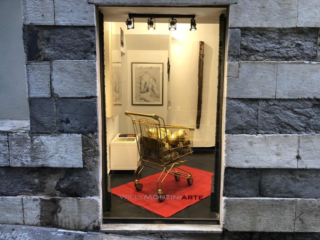 In occasione della mostra “Que Locura” alla galleria Willy Montini Arte di Genova (3 ottobre – 6 dicembre 2025), viene articolato un dialogo provocatorio tra epoche e simboli. Da un lato la serie integrale delle ottanta incisioni de I Disastri della Guerra di Francisco Goya, dall’altro l’intervento contemporaneo di Marco Mazzarello: un carrello carico di oltre trenta teschi umani ricoperti d’oro. L’installazione – potente e perturbante – si pone come nodo di tensione visiva e concettuale, riflettendo sui temi della memoria, della violenza storica e del desiderio estetico di sublimare la morte. L’oro, qui, non è mera decorazione, ma diventa metafora del tentativo di nobilitare la tragedia, e dell’attrazione ambigua esercitata dal morbo della follia su chi osserva.