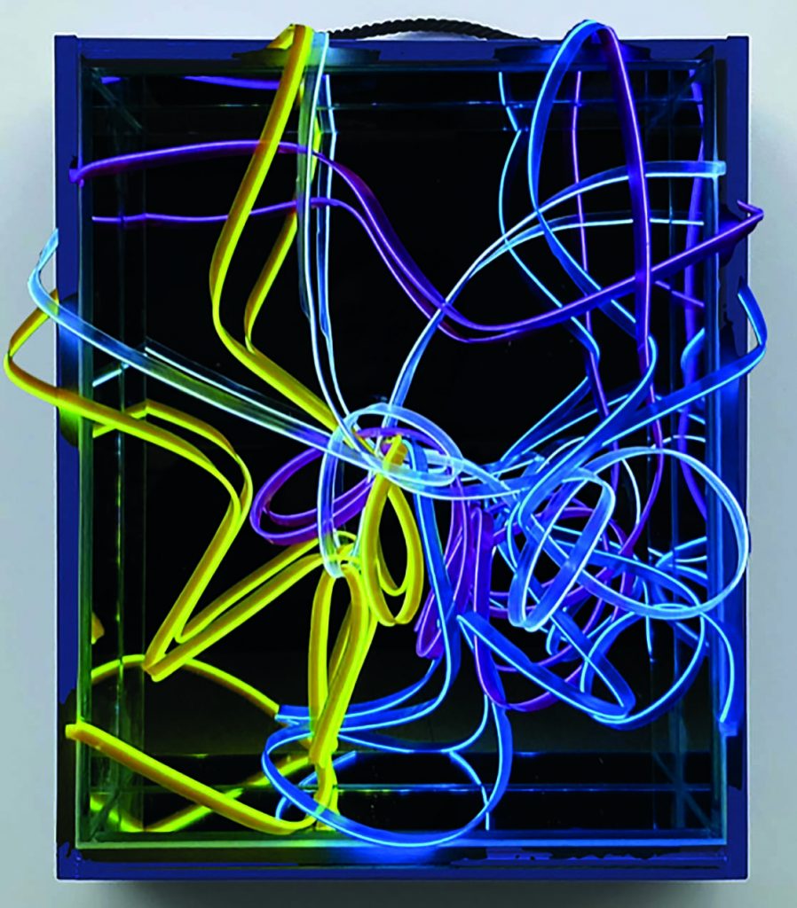 In questa mostra si squadernano opere che vanno da una razionalità di strutture compositive di matrice geometrica a una ricchezza inquieta e fortemente emotiva di stesure cromatiche e materiche di matrice informale. Senza soluzione di continuità e con una lunga teoria di passaggi “intermedi” in cui la geometria non ostacola, ma asseconda il pulsare dell’emozione che soggiace, e al tempo stesso ne scandisce il ritmo: passaggi che dimostrano, in maniera plastica ed evidente, che i due poli opposti –Astratto geometrico e Informale, o, fuor di metafora, Ragione e Sentimento- non sono in realtà né davvero opposti né tanto meno inconciliabili.