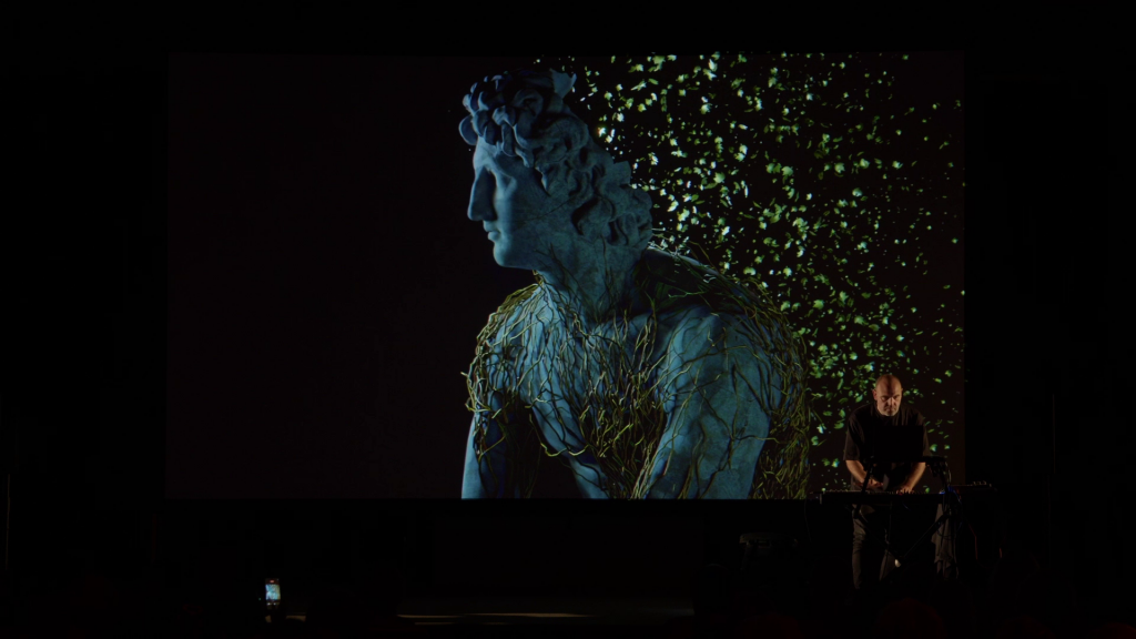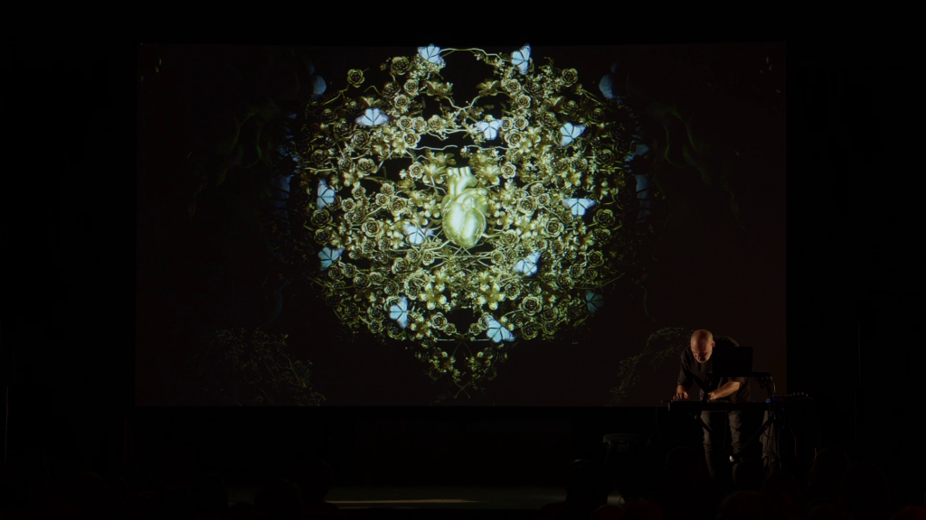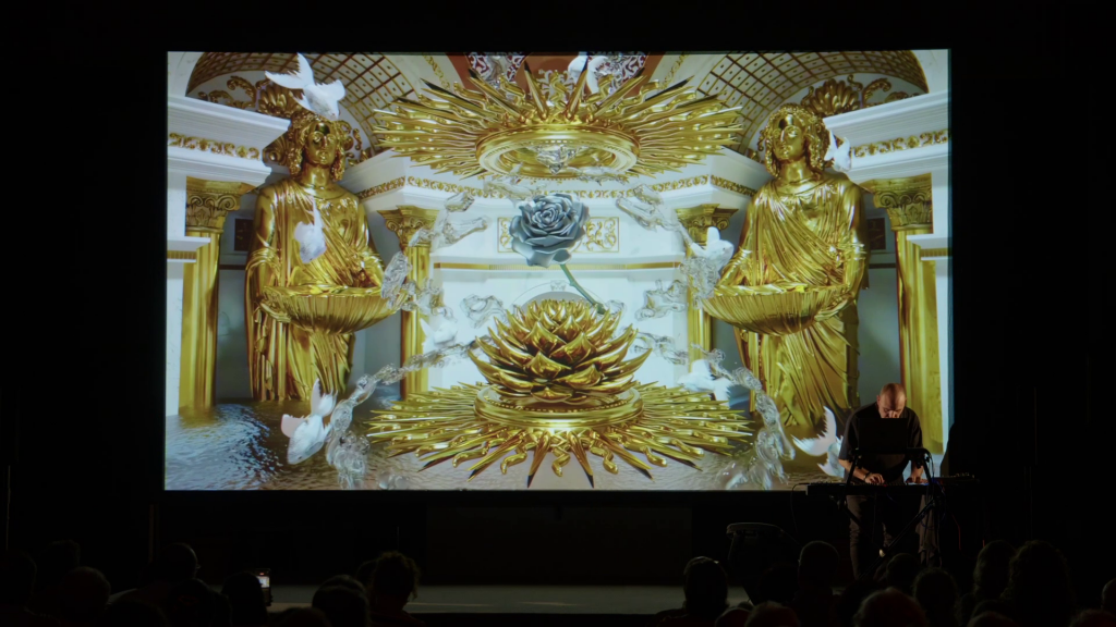 Accanto alla musica, le animazioni create da SVCCY (che anche lui suonerà insieme a Corrado sul palco l'EWI) trasformano lo spazio in un ambiente sensoriale immersivo. Proiettate su grande schermo, le animazioni digitali dialogano con la partitura in tempo reale: paesaggi cosmici, rovine metafisiche, presenze oniriche accompagnano lo spettatore in un viaggio simbolico che esplora la morte, la trascendenza e il sacro. Ogni elemento visivo è parte di una drammaturgia autonoma, perfettamente sincronizzata con la musica, capace di generare un