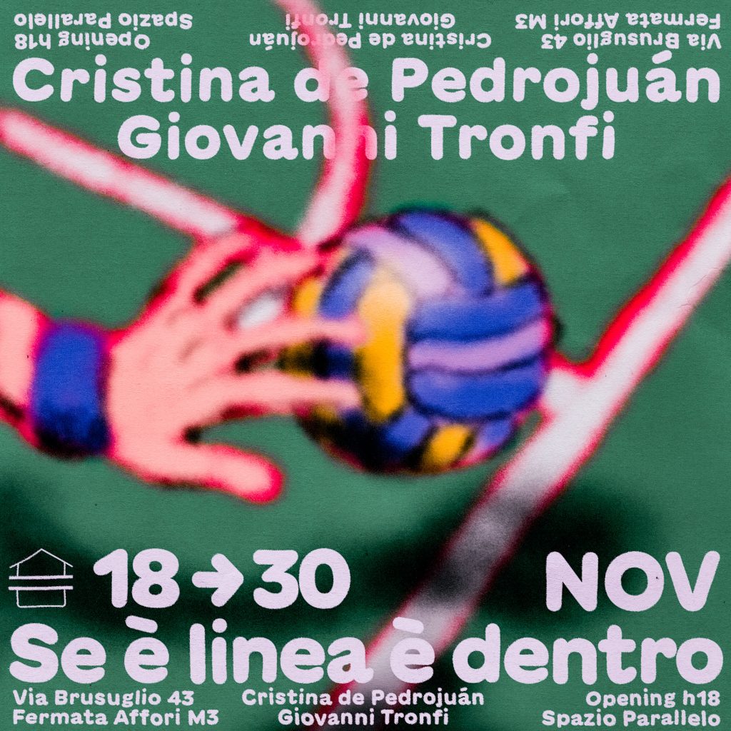 Spazio Parallelo, Milano, ospiterà la prima bi-personale degli artisti Cristina de Pedrojuán (1997 Aranda de Duero, vive e lavora a Milano) e Giovanni Tronfi (1998 Pisa, vive e lavora a Milano).