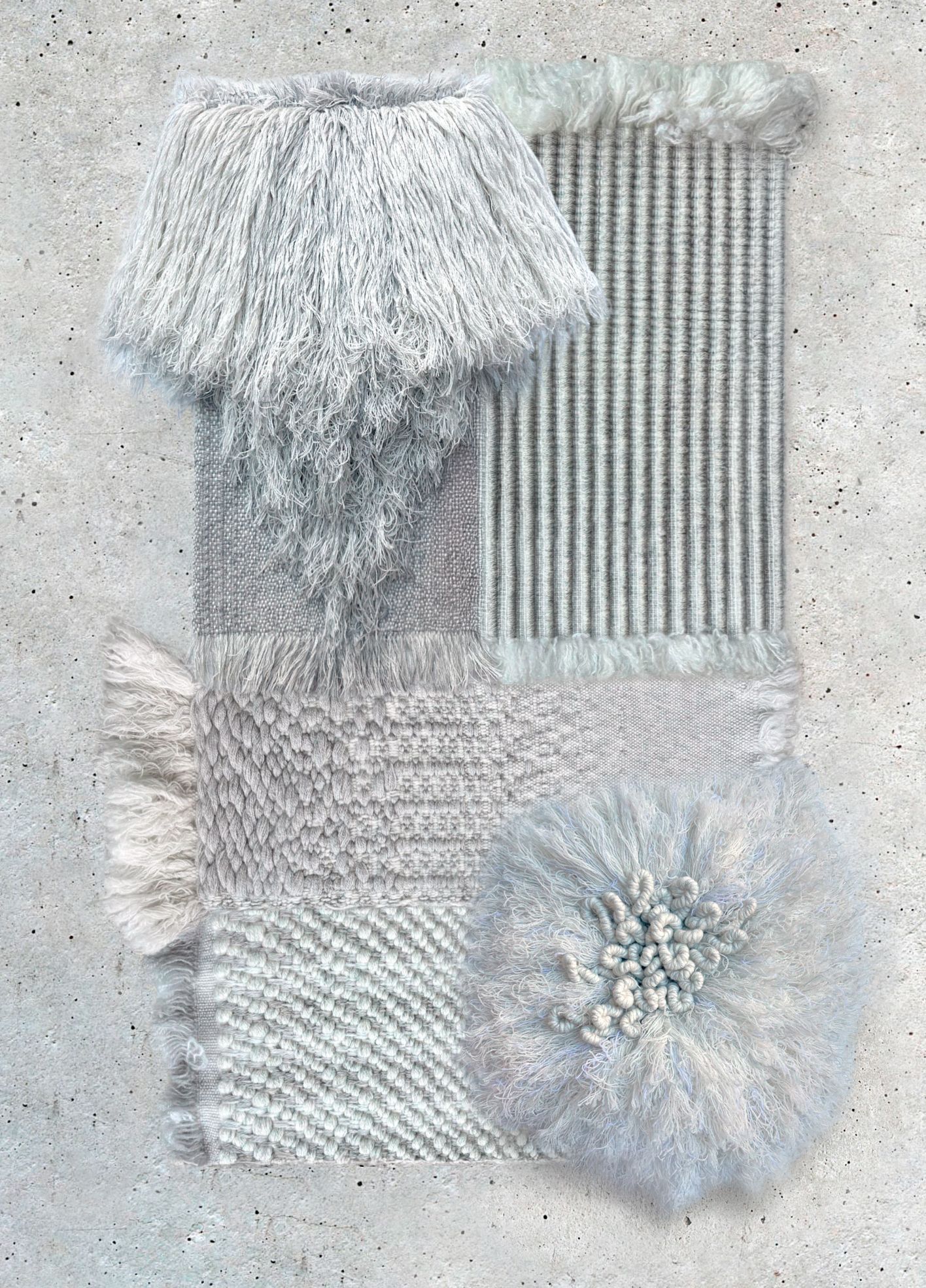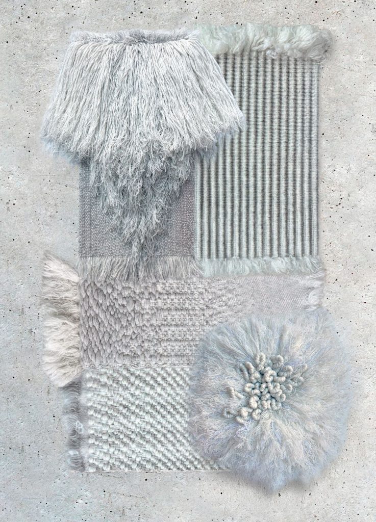 Per questa installazione, Pierluigi Fucci ha ideato una serie di complementi d’arredo realizzati con preziosi filati di purissimo cashmere, ispirati all’artista croata Jagoda Buić, figura chiave del movimento ”New Tapestry”.