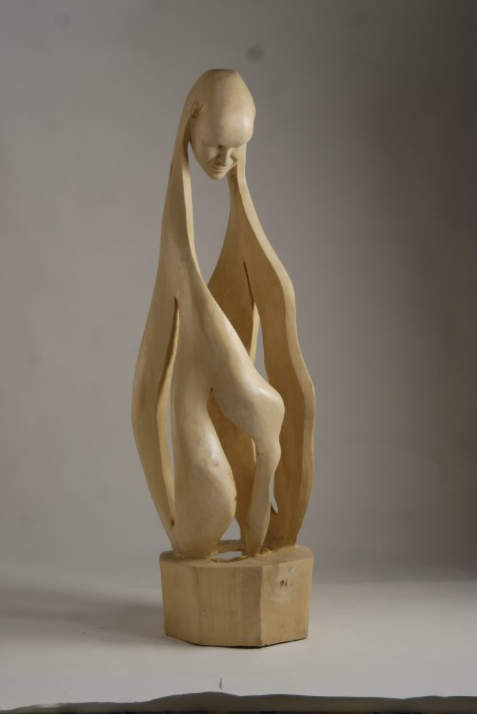 In tutta la galleria poi sono disseminate una decina di sculture in legno, per lo più di grandi dimensioni, dello scultore Giampaolo Pasini che raccontano più di vent’anni di evoluzione artistica, dalla figurazione degli inizi all’astrazione pura degli ultimi anni. Tratti comuni che caratterizzano l’intera produzione è un sapiente utilizzo del legno, la ricerca di unìarmonia di linee, di pieni e di vuoti, e, dal punto di vista dei contenuti, l’affrontare sovente temi sociali con arguzia e originalità di sguardo. E sempre con originalità.