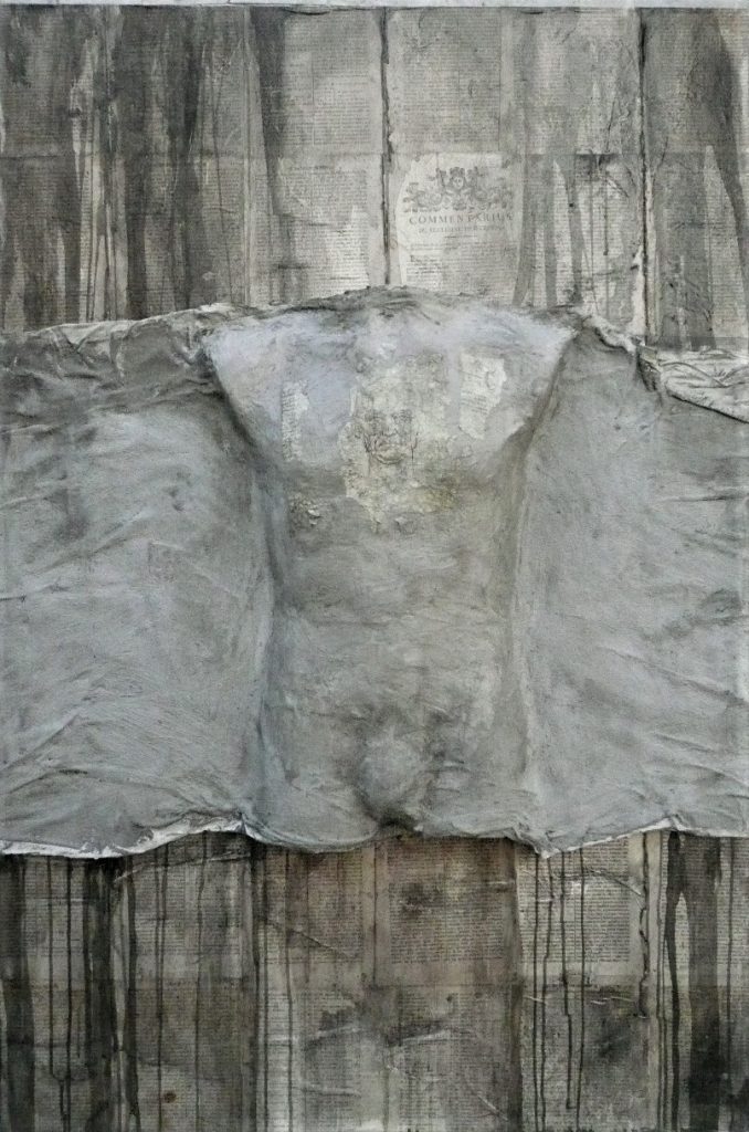 Nelle sale Leonardo e De Chirico e nello spazio Brunelleschi le quaranta opere esposte di Virgilio Patarini raccontano alcune delle tappe salienti della carriera pittorica di questo eclettico artista, dal 2001 al 2026. Tre le linee di ricerca che si sono intersecate negli anni, due delle quali legate a filo doppio ai percorsi paralleli dell’autore nel campo della letteratura e del teatro: molte infatti sono le opere ispirate ad autori o testi letterari e frequente è l’uso di pagine di libri antichi nella realizzazione delle opere, così come frequenti sono quadri e installazioni che paiono pezzi di scenografie teatrali decontestualizzati e appesi a parete o presentati come sculture. Un terzo filone è invece più spiccatamente pittorico e vede la contaminazione tra una pittura materica e informale e una figurazione allusiva.