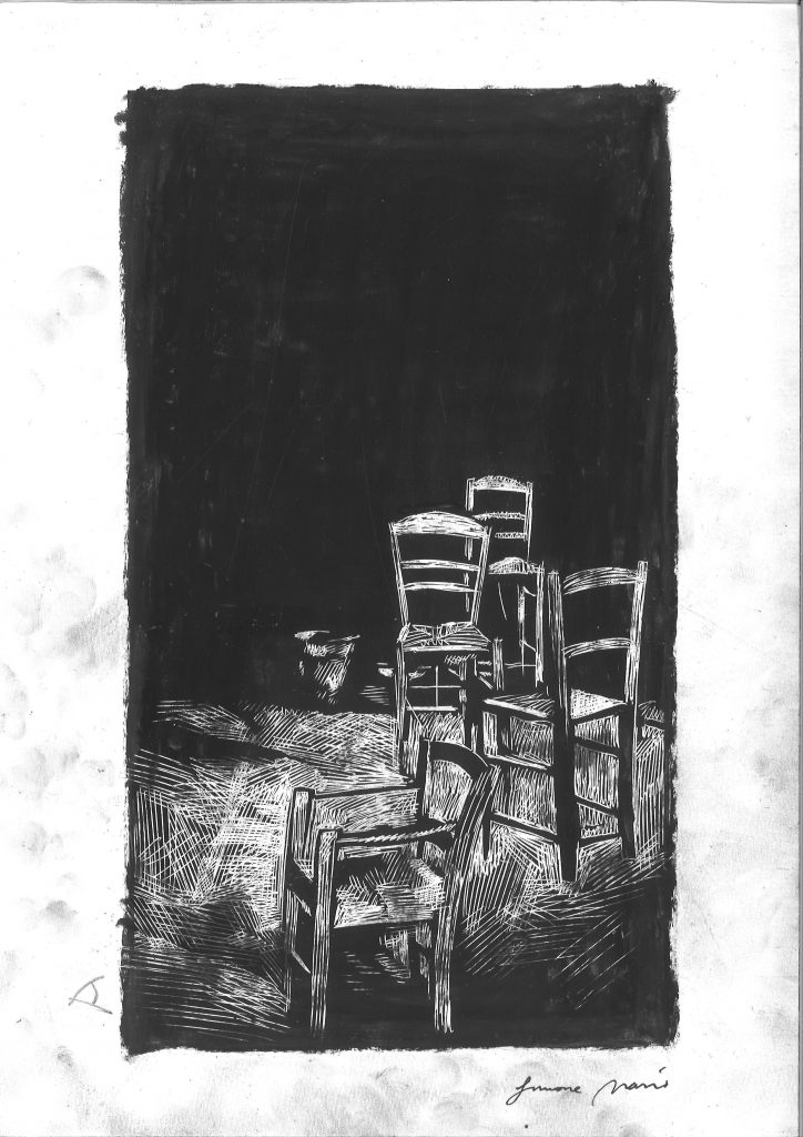 Un tempo che misura i luoghi si inserisce nel percorso di collaborazione avviato da tempo tra Tricromia e Simone Massi, iniziato con il libro d’artista Scene dentro noi, progetto ispirato al suo universo cinematografico, con prefazione di Luca Raffaelli. Un lavoro compatto e coerente, attraversato da un segno essenziale, intenso e misurato, che restituisce un senso di rigore e concentrazione quasi ascetici.